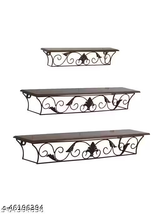 Wooden Iron Wall Shelf Wall Bracket Floating Wall Sheves Set of 3 for Home Decor, Living Room Decor
