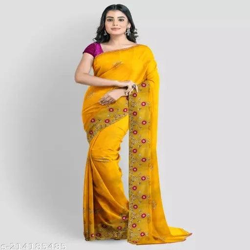 Yellow Pink Syclon Silk Net Zari EMBROIDERY SAREES