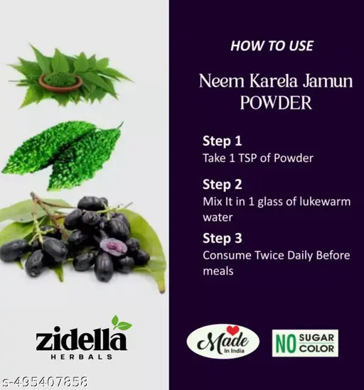 Zidella Diabic Care Neem Jamun Karela Powder | Clinically Proven for results in 3 months| Safe, Natural & 100% Ayurvedic | Helps maintain Healthy Glucose Metabolism |Salacia for Healthy Sugar Management- 100GM