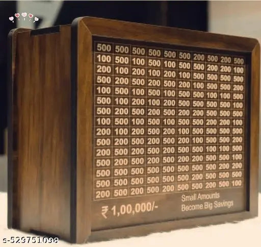 1 Lakh Wooden Money Piggi Bank for Kids/Piggy Bank, Money Box, Coin Box with Carved Design for Kids/Children, Savings Challenge Box, Cashbox,Cash Vault Wooden Savings Box,Wooden Coin Piggy Bank,Money Save Box Smash, Money Save