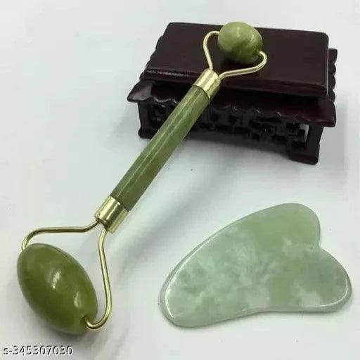 Marble Jade roller Face Massager Double Rollers Antiaging Face Eye Neck Foot Massage Tool Stimulating Blood Flow (Green)