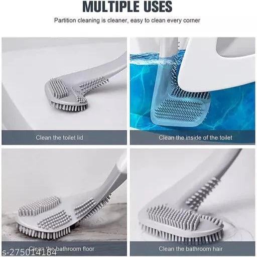 Toilet Brush in Silicone Material with Hard Plastic Holder Contains Slim Flex Brush