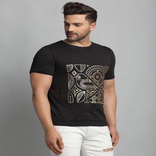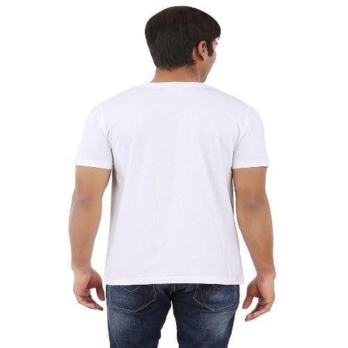 Glito Printed White Half Sleeves Round Neck T-shirts For Men's