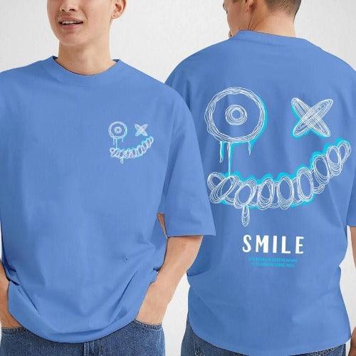 Manlino Men's Cotton Blend Blue Oversized Graphic Printed T-Shirt