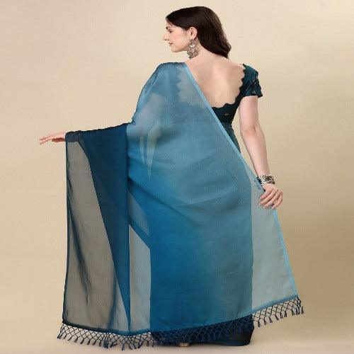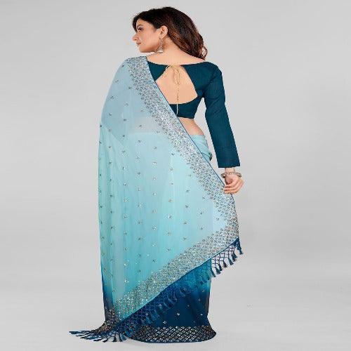 Fancy Sequined Embroidered Teal Blue and Sky Blue Coloured Georgette Saree with Blouse Piece