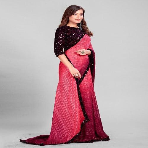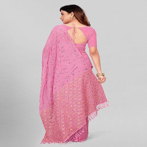 Fancy Sequined Embroidered Pink Coloured Silk Saree with Blouse Piece