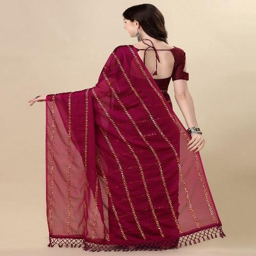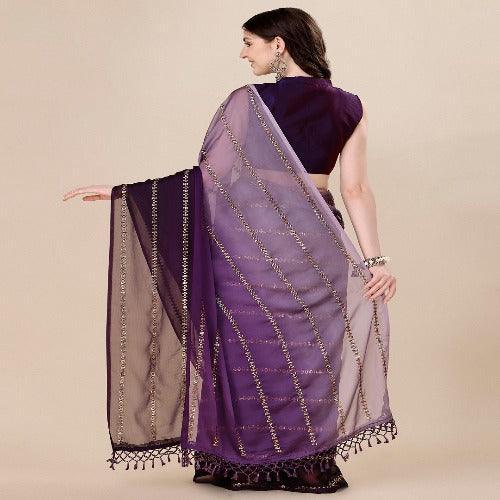 Fancy Sequined Embroidered Purple Coloured Silk Saree with Blouse Piece
