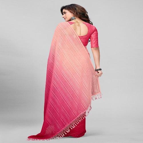 Fancy Embellished Pink Coloured Silk Saree with Blouse Piece
