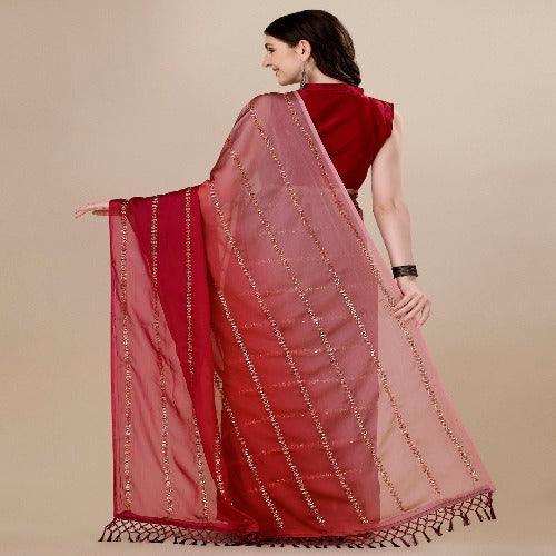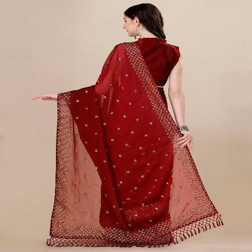 Fancy Sequined Embroidered Red Coloured Silk Saree with Blouse Piece