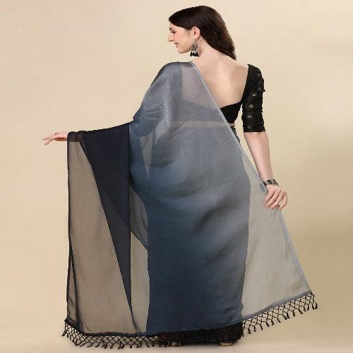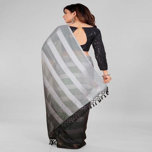 Fancy Embellished Grey and Black Coloured Silk Blend Saree with Blouse Piece