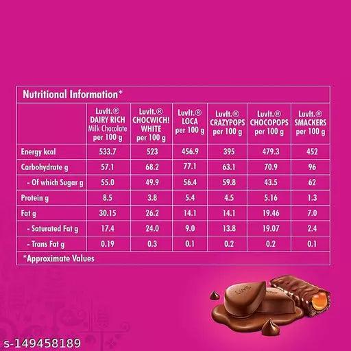 LuvIt Luscious Milk Chocolates Bar | Combo Pack of Milk, Fruit & Nut, Roasted Almond | Deliciously Smooth | Pack of 9 - 456g