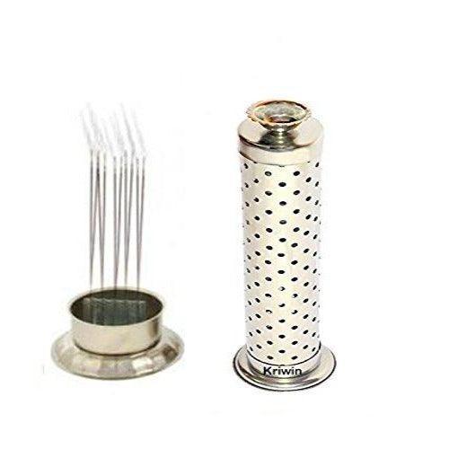 Metal Agarbatti Stand With Dhoop Holder (Silver)(Cylindrical)