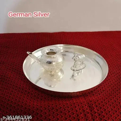 Gorgeous Puja Article German silver - Puja thali, 6" Inch plate, 3" Kalasa and Spoon