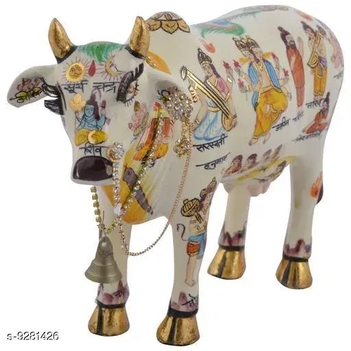 Golden Kamdhenu Cow with Laddu Gopal Statue Oxidized Finish with Luxury Velvet Box Pack and Beautiful Carry Bag Showpiece for Home Decor (Diya Set of 6 Pics)
