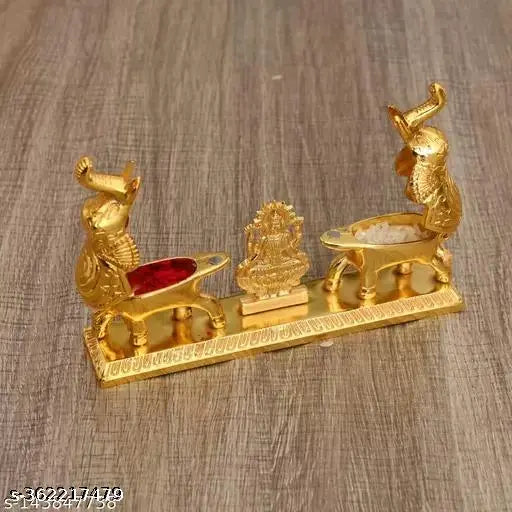 German silver Elephant With Laxmi Shape Roli-Chawal/Kumkum Box/Container In Metal Gold Polish