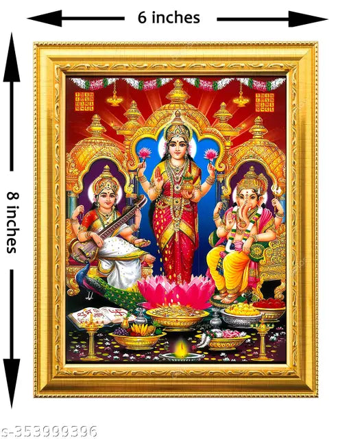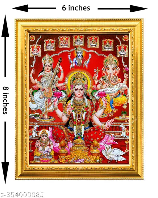 Lakshmi mata /Mahalaxmi /Ganesha ji Saraswati mata/ golden Photo Frame (6 inchesx8 inches)
