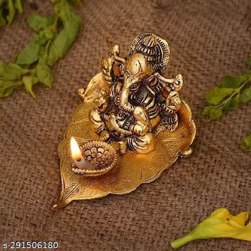 Ganesh On Pipal Leaf One Diya Set For Vastu