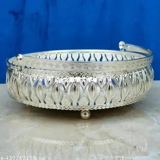 German silver - Puja thali, 6" Plate, Small kalash, Kamdhenu Cow