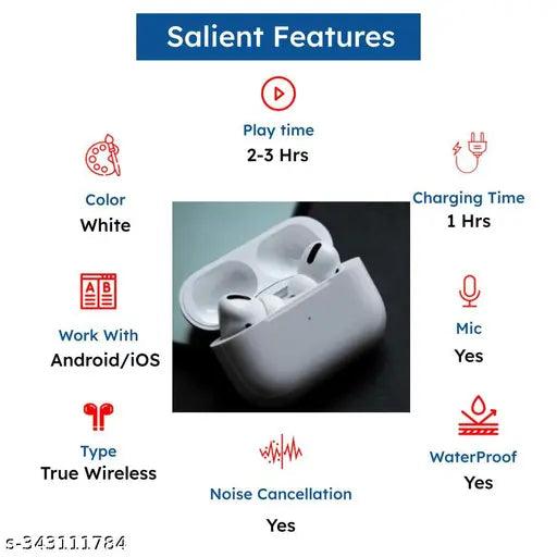 In-Ear Headphones Airpod Pro with Silicon Case True Wireless Bluetooth Earphones with 3 Hours of Playtime & Compatible for all Smartphones (White)