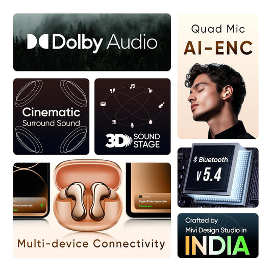 Mivi SuperPods Immersio [Flagship Launch] in Ear Ear Buds Wireless, Dolby Audio, 3D Soundstage, 60H Playtime, AI ENC, Bluetooth TWS, BT v5.4 Earbuds