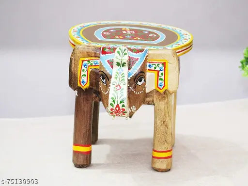 Handcrafted Handmade Decorative Wooden Painted Stool Elephant, 6 -inch, Multicolour