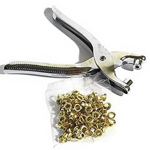 100 Pcs Gold Eyelets Belt Setting Plier – Leather Hole Punch Pliers, Grommets Kit with 100 Metal Eyelets