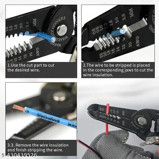 3-in-1 Multifunctional Manual Wire Stripper/Cutter/Pliers, 16.51 cm Heavy Duty Metal Tool for Stripping