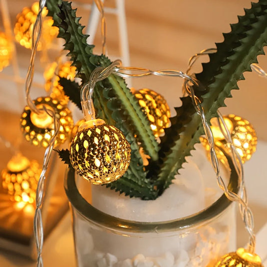Metal Ball String Lights 20 LED Indoor & Outdoor Decor - Intricate Pattern, Wire LED for Living Room, Dining, Parties, Festivals