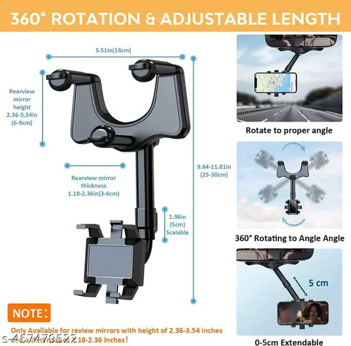 Car Rearview Mirror Phone Holder Mount 360 Degree Adjustable and Retractable