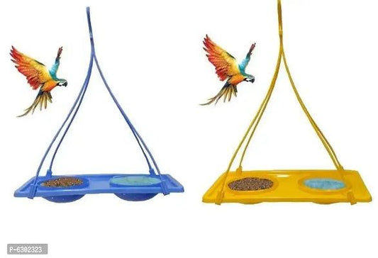 Beautiful Plastic Food And Water Feeder Hangings for Birds- 2 Pieces