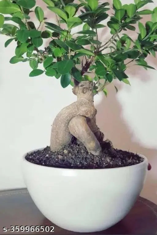 Ficus Bonsai Plants | Best Mini Tree for home and office in 4" White Round Pot
