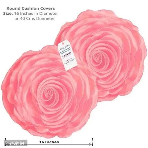 polyester Round Tissue Rose Cushion Covers - Pack of 5(40x40cms, Baby Pink)