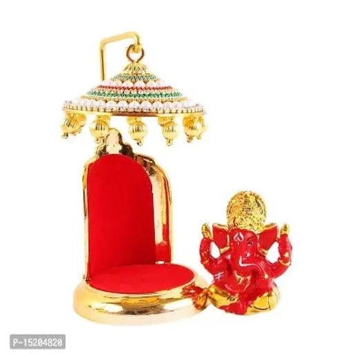 Gold plate Ganesh Idol Statue for Car Dashboard with Umbrella Office Table study Table Showpices