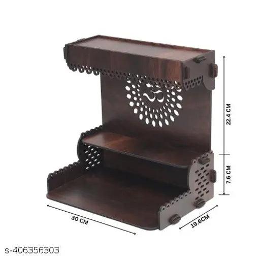 Elegant Handcrafted Wooden Wall Mounted Puja Shelf with Om Design - Traditional Home Temple & Decor