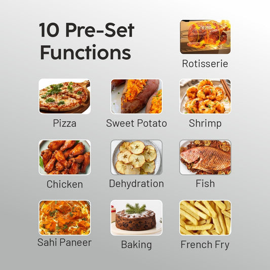 Glen 12 Litre Digital Air Fryer Oven for Home, 1800W, 10 Preset Function, Rotisserie, Digital Display & Controls, Airfryer to Dehydrate, Defrost, Bake, Roast, Toast with Less Oil -Black (SA-3046DSS)