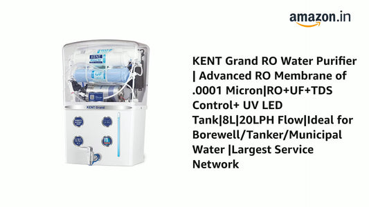 KENT Grand RO Water Purifier | Advanced RO Tech for Sabse Shudh Paani | RO+UF+TDS Control + UV LED Tank | 8L | 20LPH Flow | Ideal for Borewell/Tanker/Municipal Water | Largest Service Network : Amazon.in: Home & Kitchen
