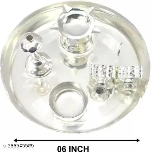 Festival Silver Plated Puja Thali Set 6 Inch, Classic Occasional Gift, Pooja Thali Decorative, Wedding Return Gift Silver Plated (Silver)