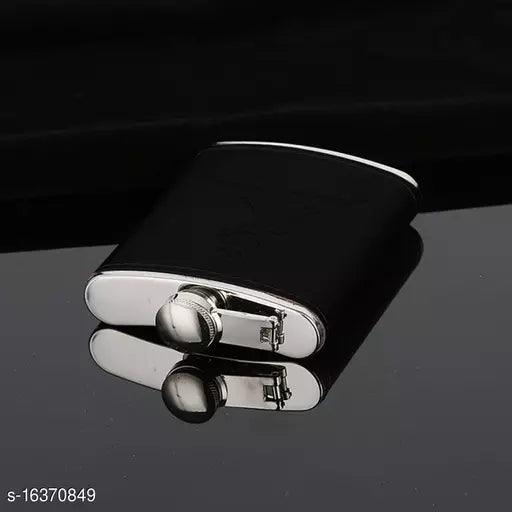 Johnnie Walker Stainless Steel and Stitched Leather Alcoholic Beverage Holder Hip Flask , 8 oz (236 ml)