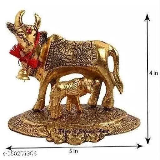 Metal Golden Kamdhenu Cow With Calf Statue,Cow and Calf Idol,Good Luck