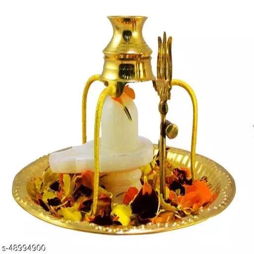 Brass shivling Stand shivling Stone Brass Pooja Plate Thali with Shivling Stand