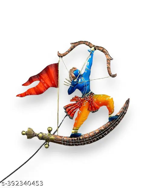 METAL SHREE RAM ON SWORD LED WALL DECOR ANTIQUE SCULPTURE