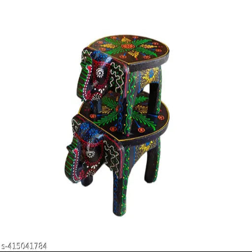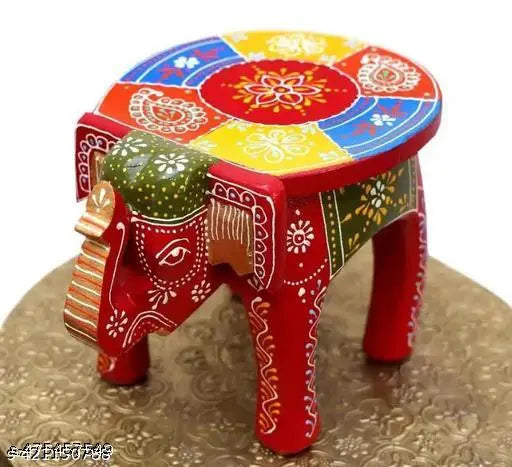 Hand Painted Decorative wooden Elephant Stool Handcrafted (Yellow/Orange), 8 Inches