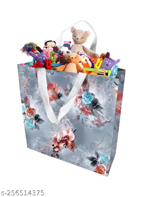 Laminated Printed Carry Bags For Shopping with Handles (Multicolors, 12 x 4 x 13 Inches) -Eco friendly material & Paper, Pack of 6