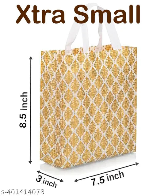 Carry Bag for Return Gifts | Shopping Bag | Reusable Non-Woven Tote Bags, White-Gold Printed Pack of 10nos