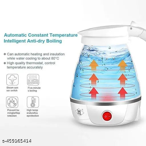 Travel Folding Electric Kettle, Fast Boiling, Beautiful Design-Silicone Foldable Kettle (White, Blue) - 600 Watt