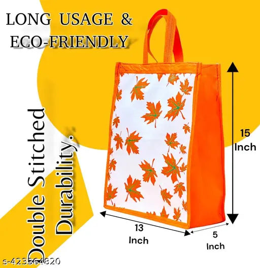 Autumn theme Reusable Grocery Shopping Bag With Handle|Goodies Bag Pack of 20 Grocery Bags (White)