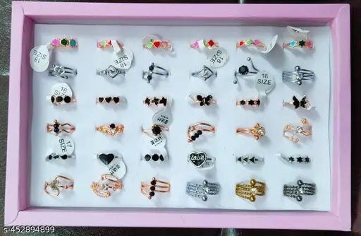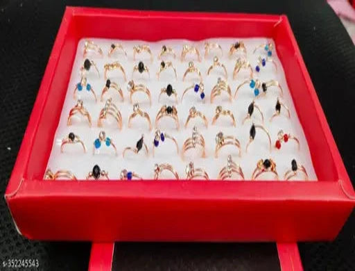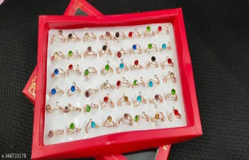 Combo Pack of 36 Multicolor, Colorful Multi Design Rings for Girls, Ladies & Women(1 Box)
