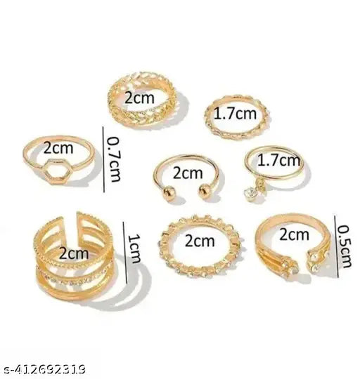 Stunning 8pcs Gold Plated 8 Piece Trendy Dailywear Western Designs Ring Set For Women and Girls.