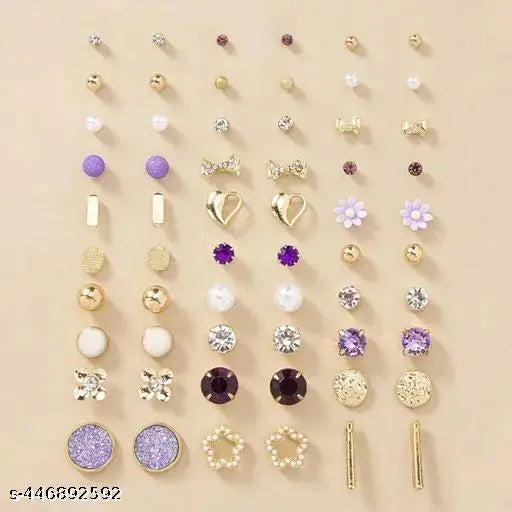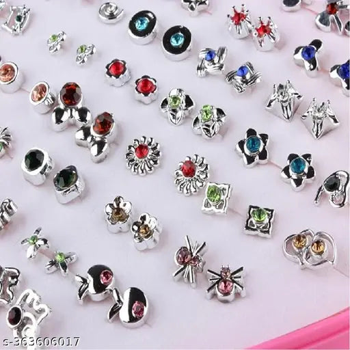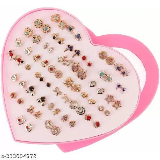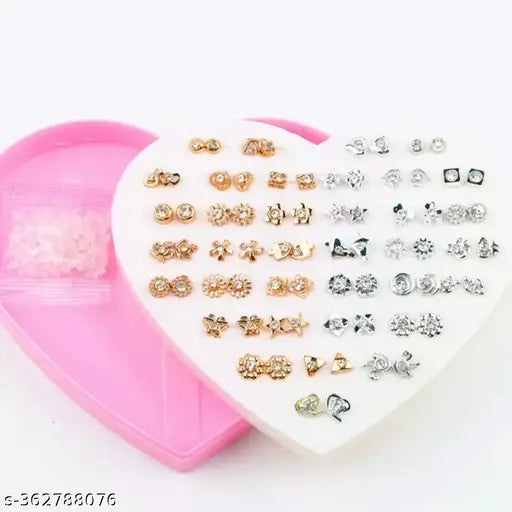 36 pair Silver & Gold stones earrings stud combo with heart shape box for Girls