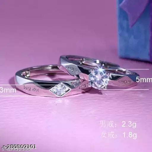 Diamond Stylish Wedding Engagement Valentine Gift Silver Plated Ring For Women And Men